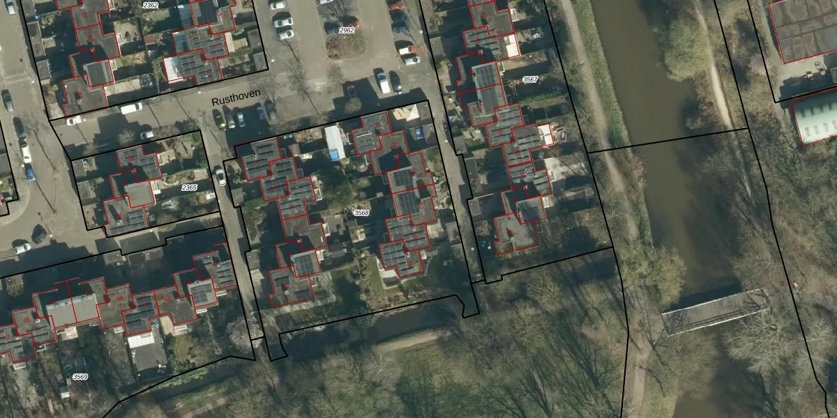 Het perceel waarop Rusthoven 20 staat heeft een oppervlakte van 2389 m². Dit is een zeer groot perceel. De perceeloppervlakte wordt geregistreerd door het Kadaster. Gedetailleerde informatie over de maten van dit perceel kunt u vinden in het rapport Kadastrale kaart met maatvoering van Rusthoven 20.