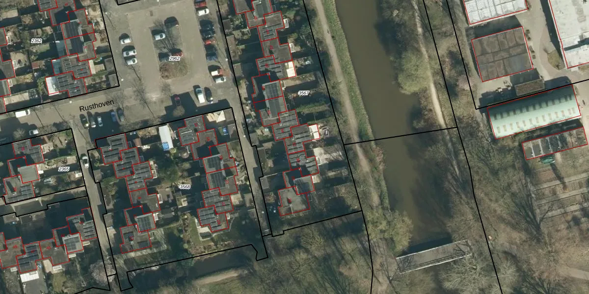Het perceel waarop Rusthoven 32 staat heeft een oppervlakte van 2507 m². Dit is een zeer groot perceel. De perceeloppervlakte wordt geregistreerd door het Kadaster. Gedetailleerde informatie over de maten van dit perceel kunt u vinden in het rapport Kadastrale kaart met maatvoering van Rusthoven 32.