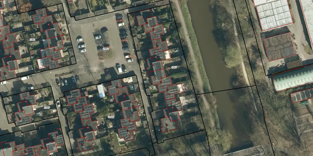 Het perceel waarop Rusthoven 36 staat heeft een oppervlakte van 2507 m². Dit is een zeer groot perceel. De perceeloppervlakte wordt geregistreerd door het Kadaster. Gedetailleerde informatie over de maten van dit perceel kunt u vinden in het rapport Kadastrale kaart met maatvoering van Rusthoven 36.