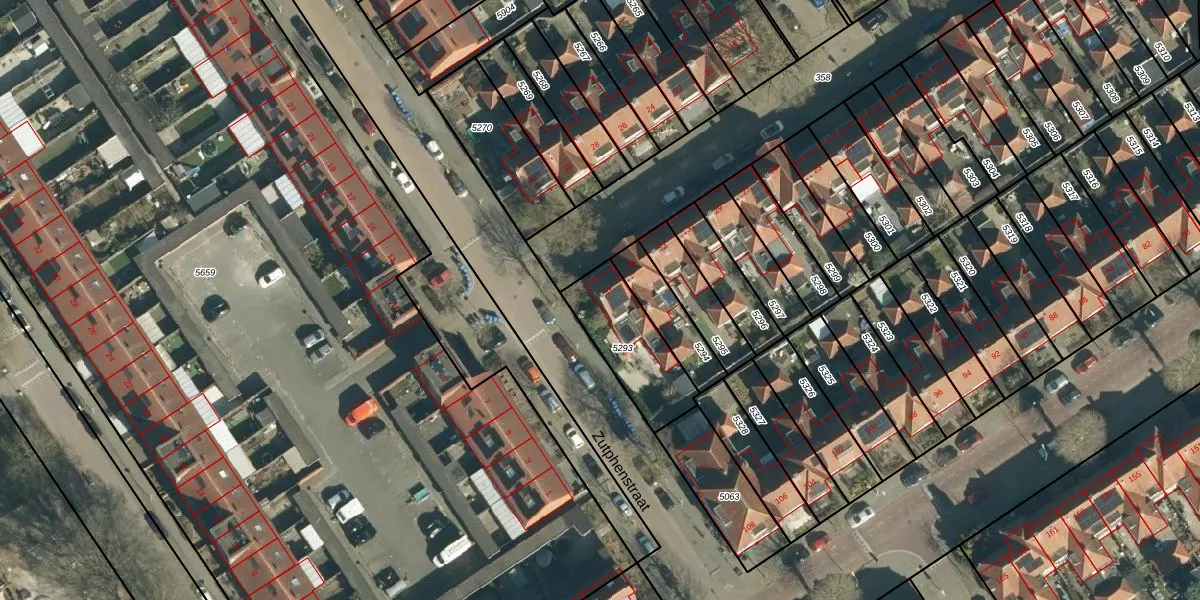 Gebruik de zoekbalk of klik op een perceel voor informatie over de adressen binnen dit perceel.