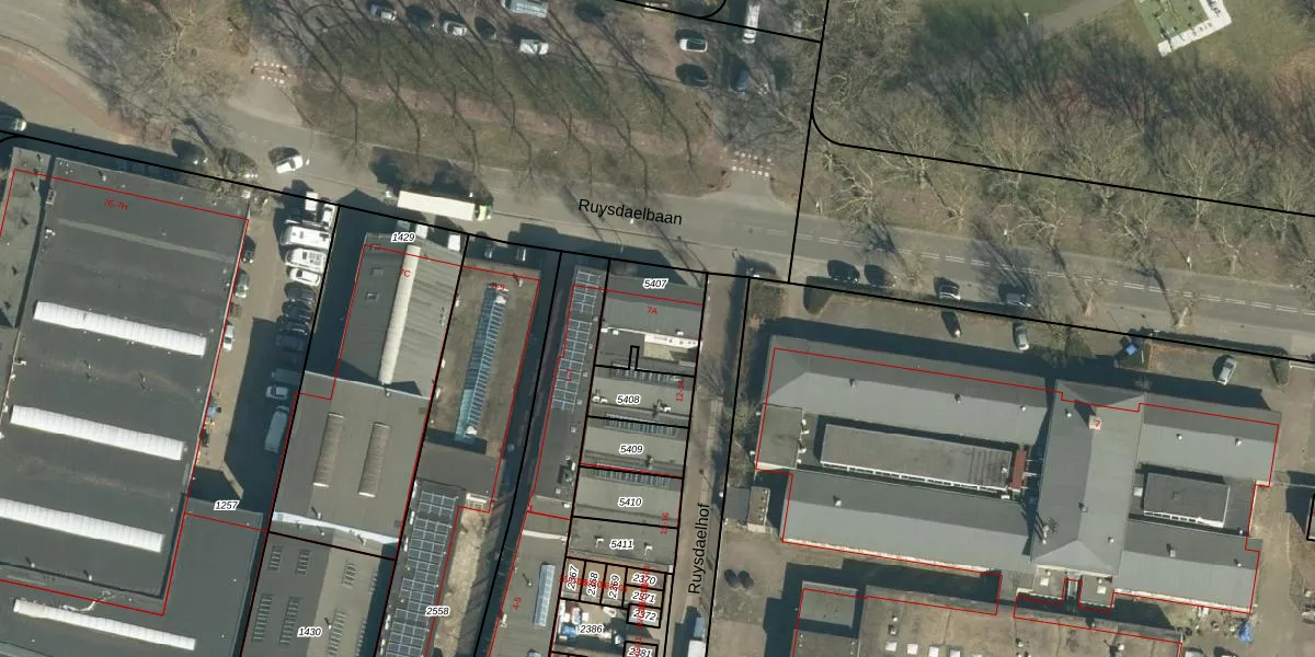 Ruysdaelbaan 7-A is gelegen op kadastraal perceel TGR00E5407. Deze kadastrale aanduiding is uniek en wordt gebruikt door het Kadaster om eigendomsrechten en andere zakelijke rechten vast te leggen. Het perceel maakt onderdeel uit van de kadastrale gemeente Tongelre.