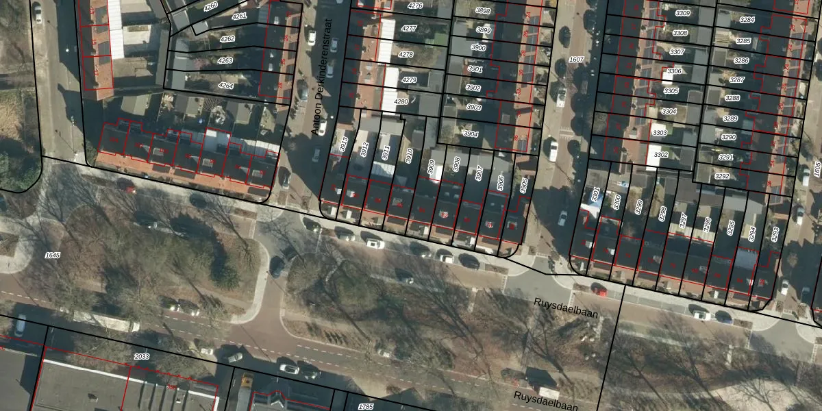 Het perceel waarop Ruysdaelbaan 86 staat heeft een oppervlakte van 166 m². Dit is een middelgroot perceel. De perceeloppervlakte wordt geregistreerd door het Kadaster. Gedetailleerde informatie over de maten van dit perceel kunt u vinden in het rapport Kadastrale kaart met maatvoering van Ruysdaelbaan 86.