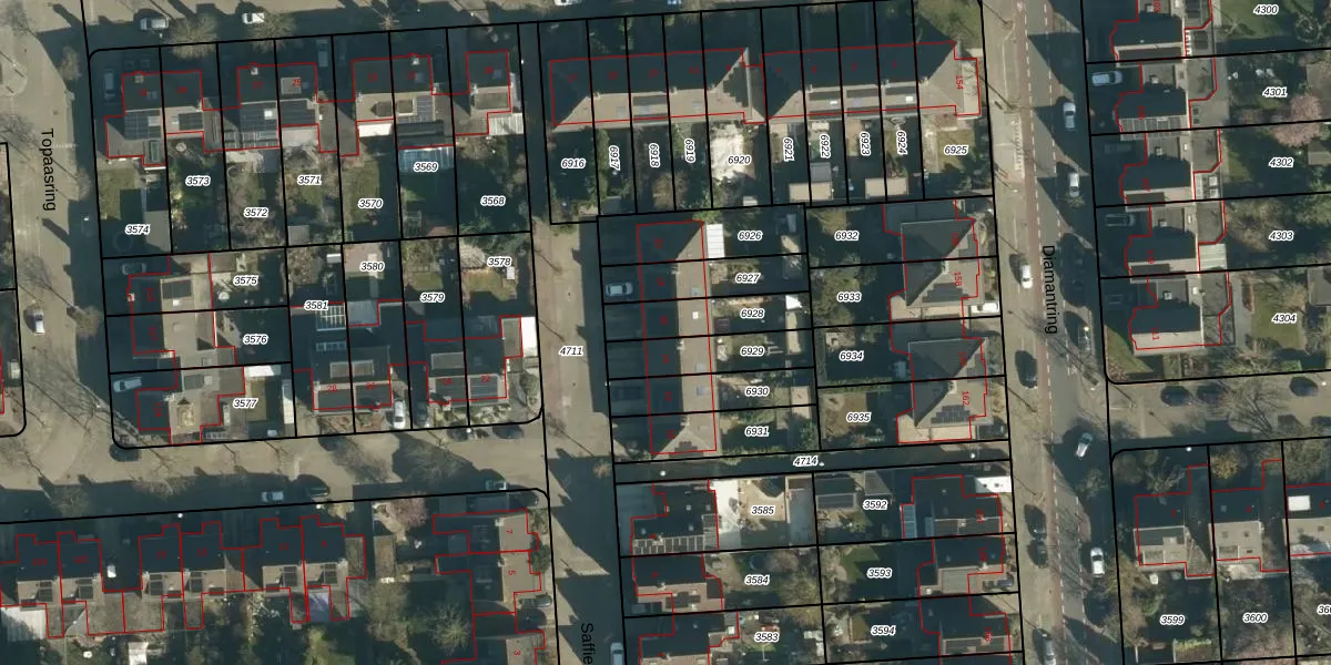 Het perceel waarop Saffier 16 staat heeft een oppervlakte van 178 m². Dit is een middelgroot perceel. De perceeloppervlakte wordt geregistreerd door het Kadaster. Gedetailleerde informatie over de maten van dit perceel kunt u vinden in het rapport Kadastrale kaart met maatvoering van Saffier 16.
