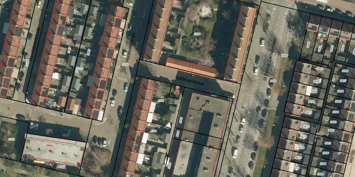 Gebruik de zoekbalk of klik op een perceel voor informatie over de adressen binnen dit perceel.