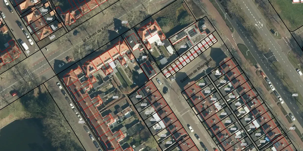 Het perceel waarop Salomon de Braystraat 65 staat heeft een oppervlakte van 351 m². Dit is een groot perceel. De perceeloppervlakte wordt geregistreerd door het Kadaster. Gedetailleerde informatie over de maten van dit perceel kunt u vinden in het rapport Kadastrale kaart met maatvoering van Salomon de Braystraat 65.