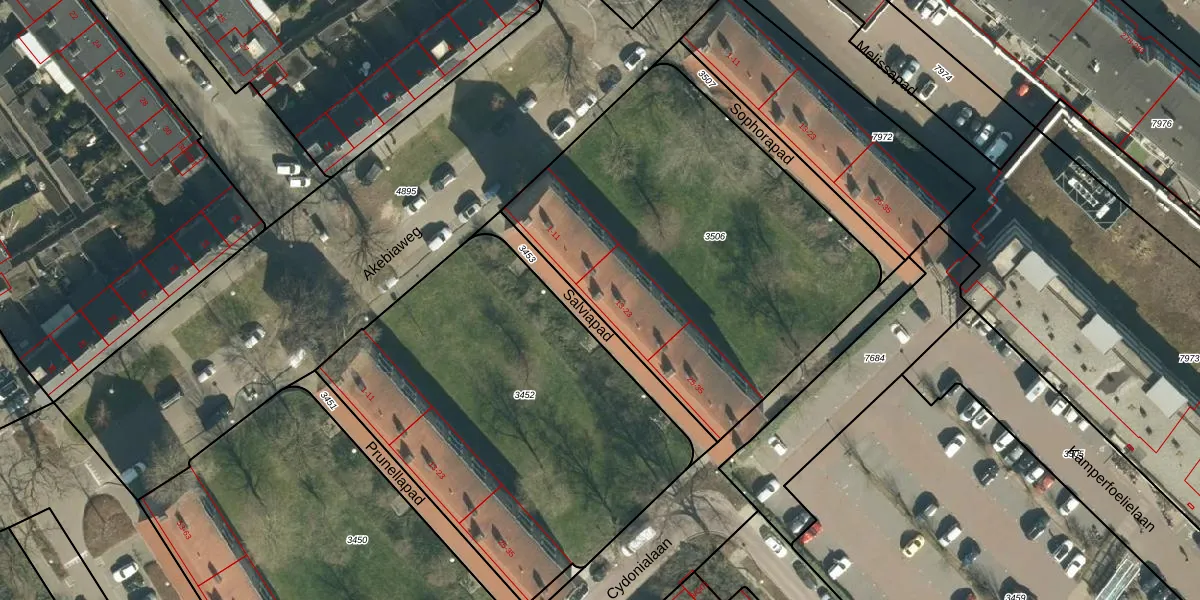 Het perceel waarop Salviapad 13 staat heeft een oppervlakte van 2066 m². Dit is een zeer groot perceel. De perceeloppervlakte wordt geregistreerd door het Kadaster. Gedetailleerde informatie over de maten van dit perceel kunt u vinden in het rapport Kadastrale kaart met maatvoering van Salviapad 13.