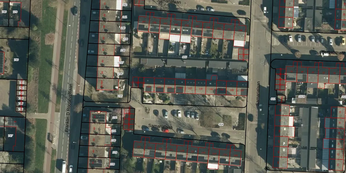 Samarialaan 133 is gelegen op kadastraal perceel WSL01M955. Deze kadastrale aanduiding is uniek en wordt gebruikt door het Kadaster om eigendomsrechten en andere zakelijke rechten vast te leggen. Het perceel maakt onderdeel uit van de kadastrale gemeente Woensel.