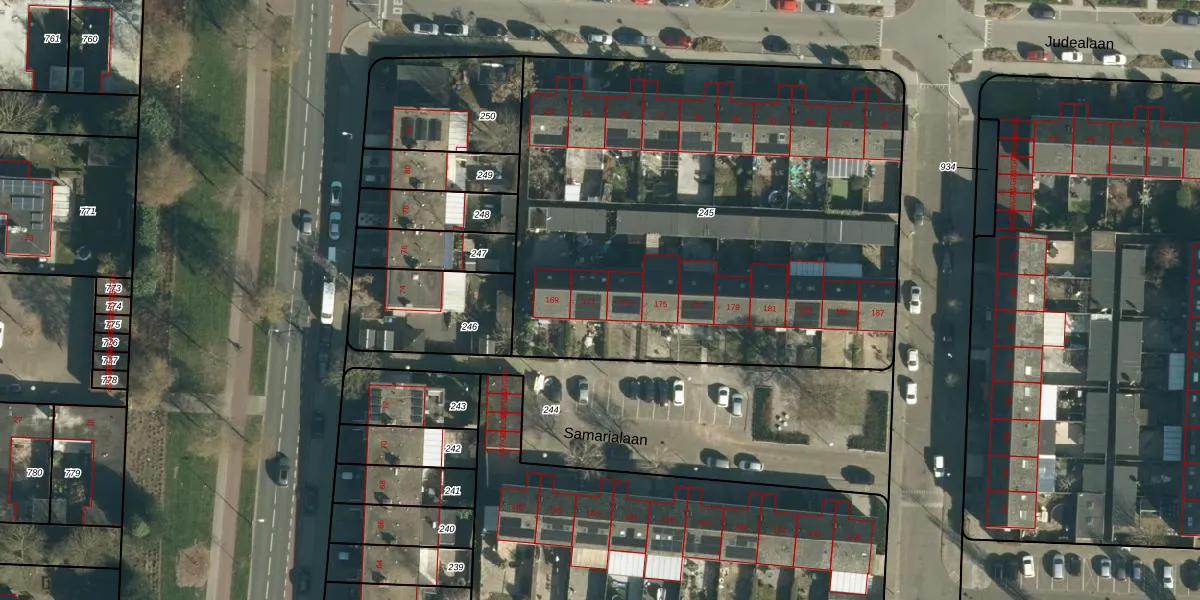 Het perceel waarop Samarialaan 171 staat heeft een oppervlakte van 3189 m². Dit is een zeer groot perceel. De perceeloppervlakte wordt geregistreerd door het Kadaster. Gedetailleerde informatie over de maten van dit perceel kunt u vinden in het rapport Kadastrale kaart met maatvoering van Samarialaan 171.