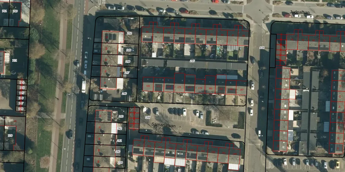 Samarialaan 173 is gelegen op kadastraal perceel WSL01M245. Deze kadastrale aanduiding is uniek en wordt gebruikt door het Kadaster om eigendomsrechten en andere zakelijke rechten vast te leggen. Het perceel maakt onderdeel uit van de kadastrale gemeente Woensel.