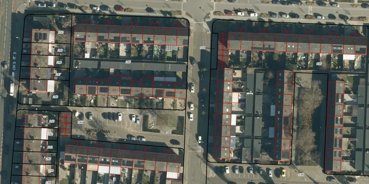 Het perceel waarop Samarialaan 187 staat heeft een oppervlakte van 3189 m². Dit is een zeer groot perceel. De perceeloppervlakte wordt geregistreerd door het Kadaster. Gedetailleerde informatie over de maten van dit perceel kunt u vinden in het rapport Kadastrale kaart met maatvoering van Samarialaan 187.