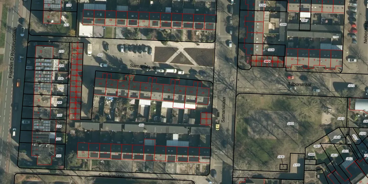 Samarialaan 29 is gelegen op kadastraal perceel WSL01M959. Deze kadastrale aanduiding is uniek en wordt gebruikt door het Kadaster om eigendomsrechten en andere zakelijke rechten vast te leggen. Het perceel maakt onderdeel uit van de kadastrale gemeente Woensel.