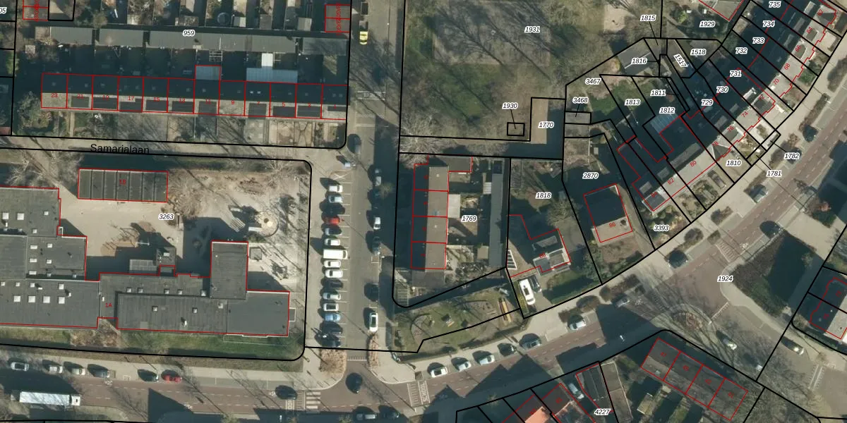 Samarialaan 6 is gelegen op kadastraal perceel WSL01M1769. Deze kadastrale aanduiding is uniek en wordt gebruikt door het Kadaster om eigendomsrechten en andere zakelijke rechten vast te leggen. Het perceel maakt onderdeel uit van de kadastrale gemeente Woensel.