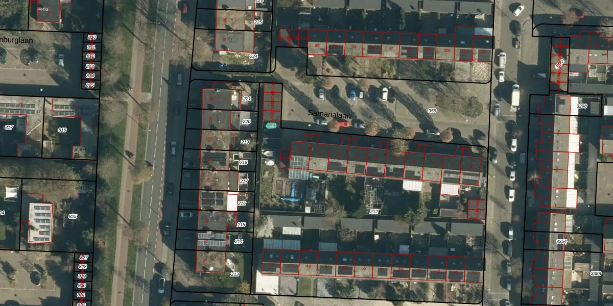 Samarialaan 87 is gelegen op kadastraal perceel WSL01M212. Deze kadastrale aanduiding is uniek en wordt gebruikt door het Kadaster om eigendomsrechten en andere zakelijke rechten vast te leggen. Het perceel maakt onderdeel uit van de kadastrale gemeente Woensel.