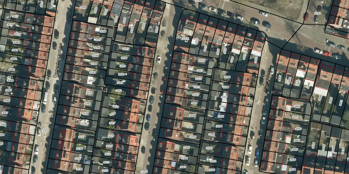 Gebruik de zoekbalk of klik op een perceel voor informatie over de adressen binnen dit perceel.