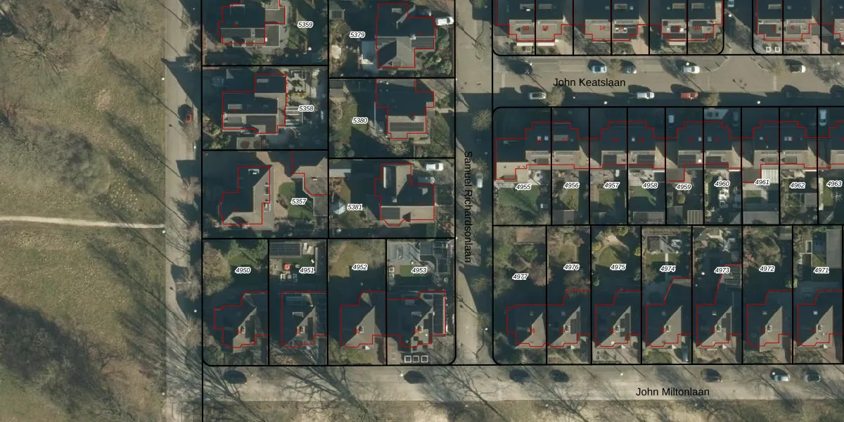 Gebruik de zoekbalk of klik op een perceel voor informatie over de adressen binnen dit perceel.