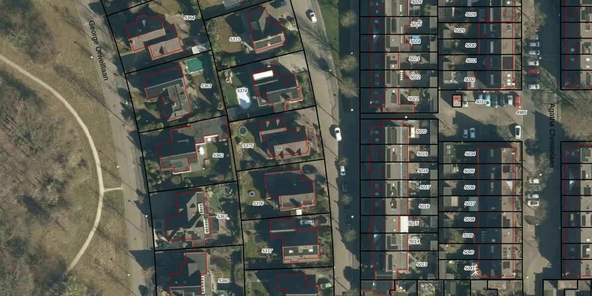 Gebruik de zoekbalk of klik op een perceel voor informatie over de adressen binnen dit perceel.