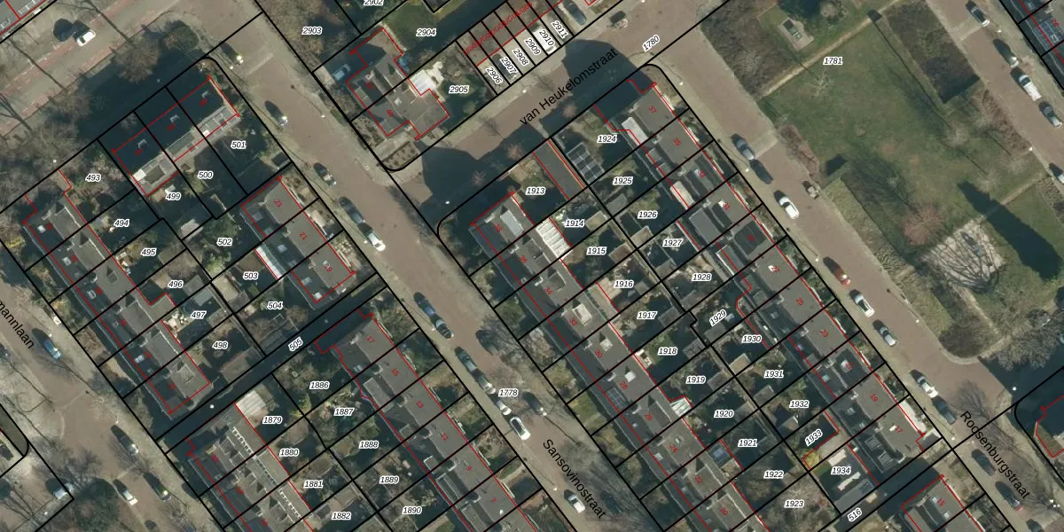Het perceel waarop Sansovinostraat 36 staat heeft een oppervlakte van 215 m². Dit is een middelgroot perceel. De perceeloppervlakte wordt geregistreerd door het Kadaster. Gedetailleerde informatie over de maten van dit perceel kunt u vinden in het rapport Kadastrale kaart met maatvoering van Sansovinostraat 36.