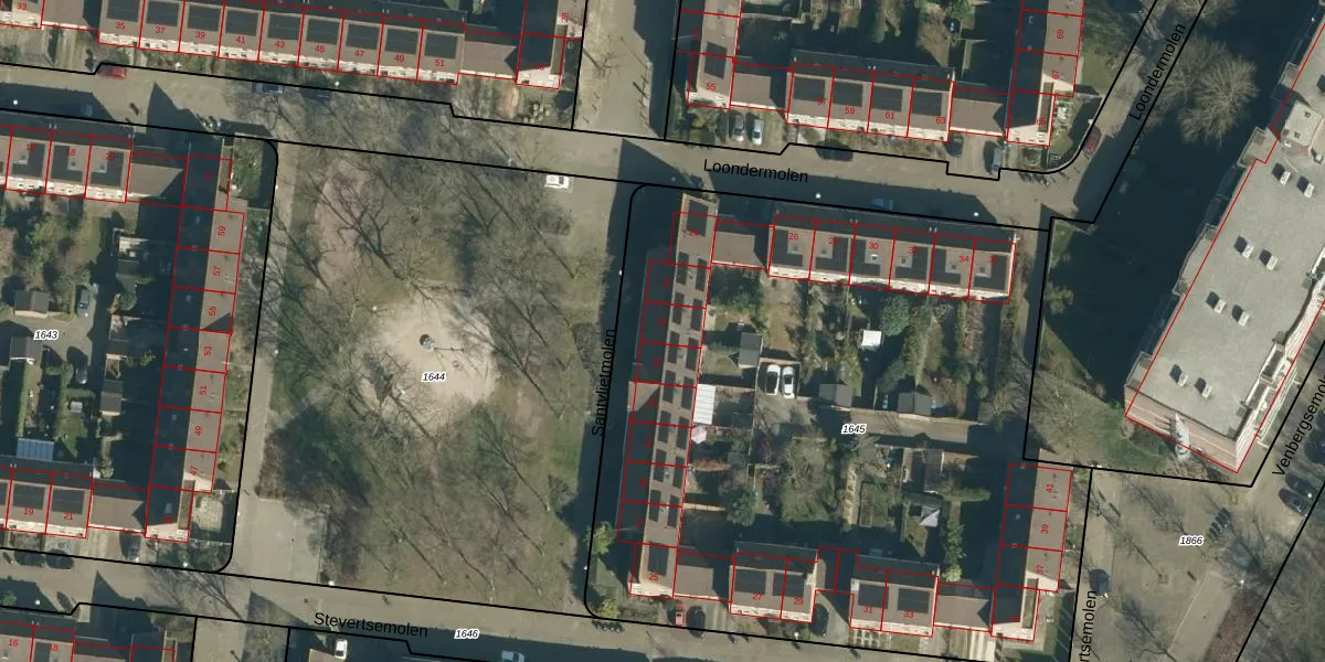 Het perceel waarop Santvlietmolen 31 staat heeft een oppervlakte van 4494 m². Dit is een zeer groot perceel. De perceeloppervlakte wordt geregistreerd door het Kadaster. Gedetailleerde informatie over de maten van dit perceel kunt u vinden in het rapport Kadastrale kaart met maatvoering van Santvlietmolen 31.