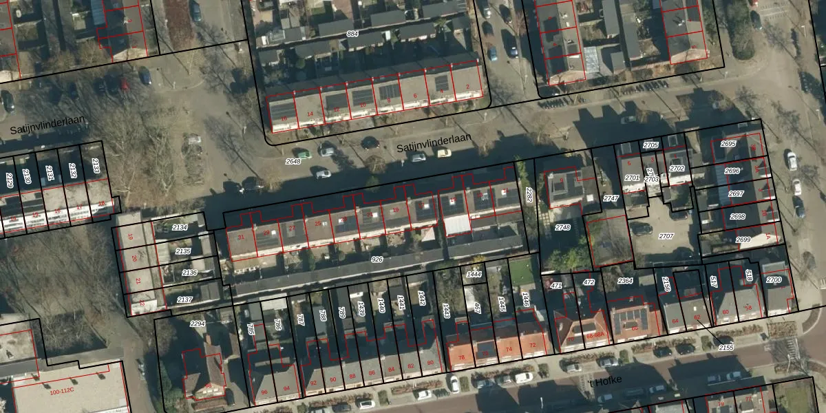 Het perceel waarop Satijnvlinderlaan 17 staat heeft een oppervlakte van 1665 m². Dit is een zeer groot perceel. De perceeloppervlakte wordt geregistreerd door het Kadaster. Gedetailleerde informatie over de maten van dit perceel kunt u vinden in het rapport Kadastrale kaart met maatvoering van Satijnvlinderlaan 17.
