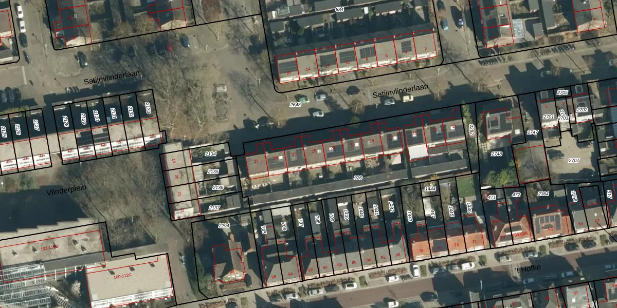 Het perceel waarop Satijnvlinderlaan 25 staat heeft een oppervlakte van 1665 m². Dit is een zeer groot perceel. De perceeloppervlakte wordt geregistreerd door het Kadaster. Gedetailleerde informatie over de maten van dit perceel kunt u vinden in het rapport Kadastrale kaart met maatvoering van Satijnvlinderlaan 25.