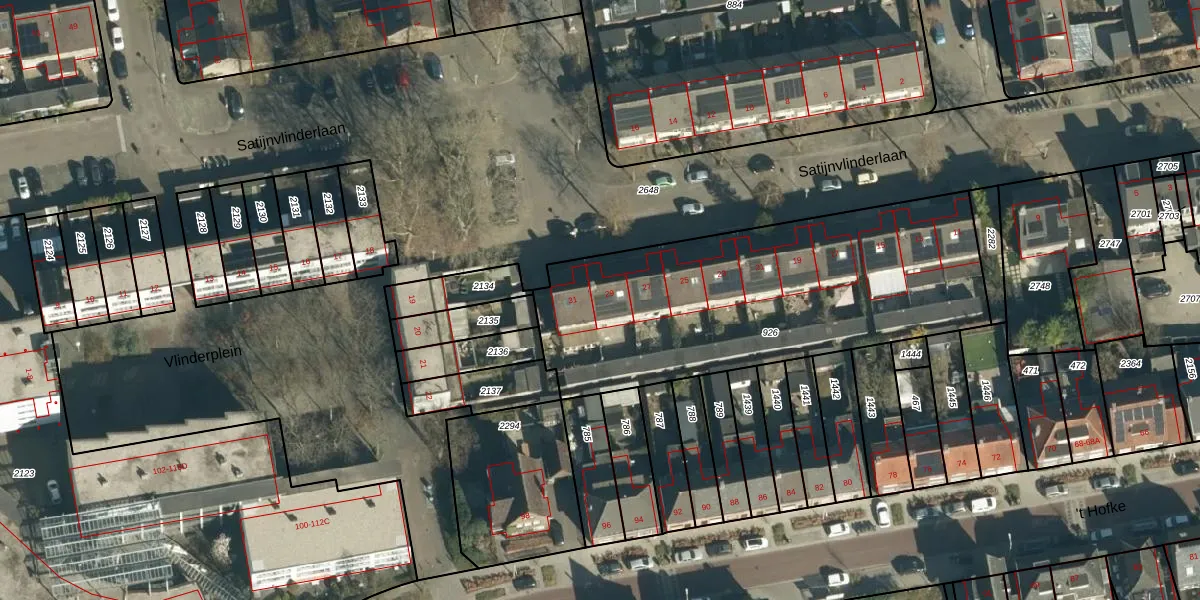 Het perceel waarop Satijnvlinderlaan 29 staat heeft een oppervlakte van 1665 m². Dit is een zeer groot perceel. De perceeloppervlakte wordt geregistreerd door het Kadaster. Gedetailleerde informatie over de maten van dit perceel kunt u vinden in het rapport Kadastrale kaart met maatvoering van Satijnvlinderlaan 29.