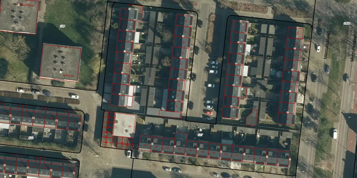 Het perceel waarop Saturnusweg 23 staat heeft een oppervlakte van 8563 m². Dit is een zeer groot perceel. De perceeloppervlakte wordt geregistreerd door het Kadaster. Gedetailleerde informatie over de maten van dit perceel kunt u vinden in het rapport Kadastrale kaart met maatvoering van Saturnusweg 23.