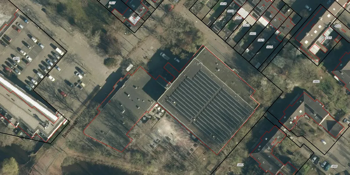 Het perceel waarop Savoiepad 14 staat heeft een oppervlakte van 8,0 ha. Dit is een zeer groot perceel. De perceeloppervlakte wordt geregistreerd door het Kadaster. Gedetailleerde informatie over de maten van dit perceel kunt u vinden in het rapport Kadastrale kaart met maatvoering van Savoiepad 14.