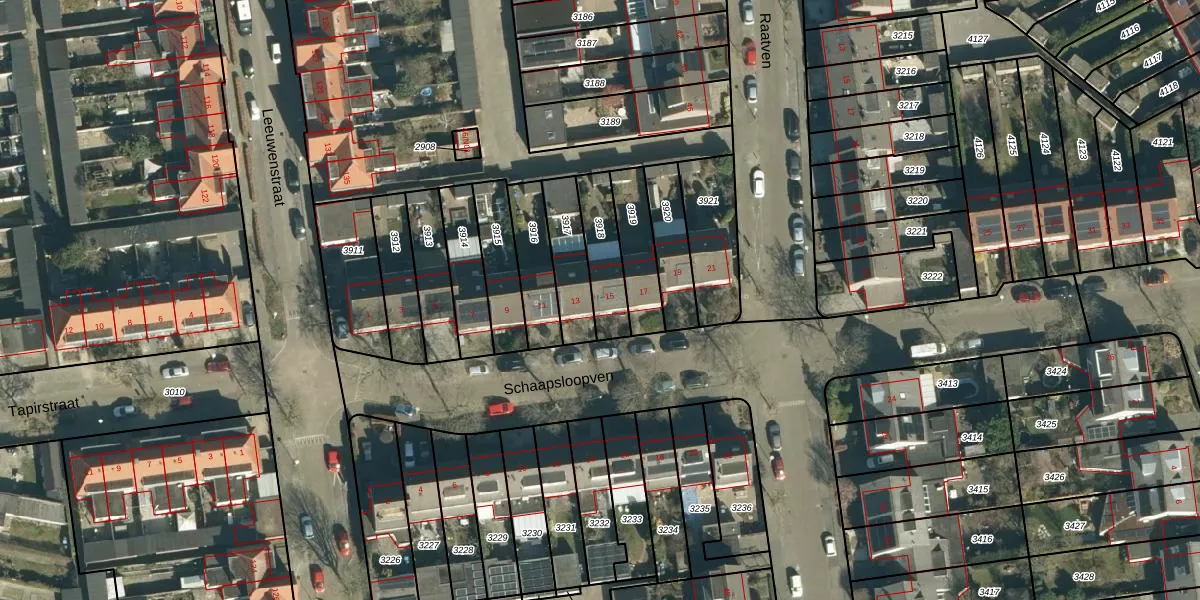 Gebruik de zoekbalk of klik op een perceel voor informatie over de adressen binnen dit perceel.