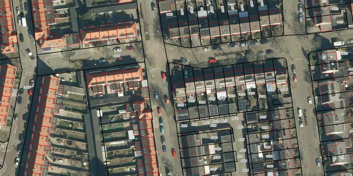 Gebruik de zoekbalk of klik op een perceel voor informatie over de adressen binnen dit perceel.