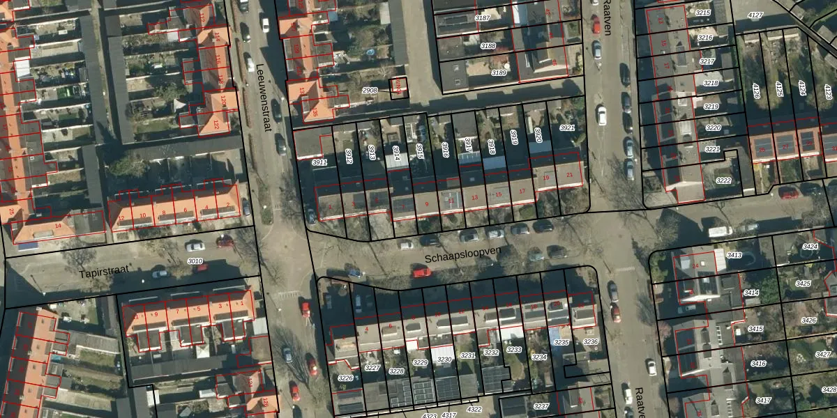 Gebruik de zoekbalk of klik op een perceel voor informatie over de adressen binnen dit perceel.