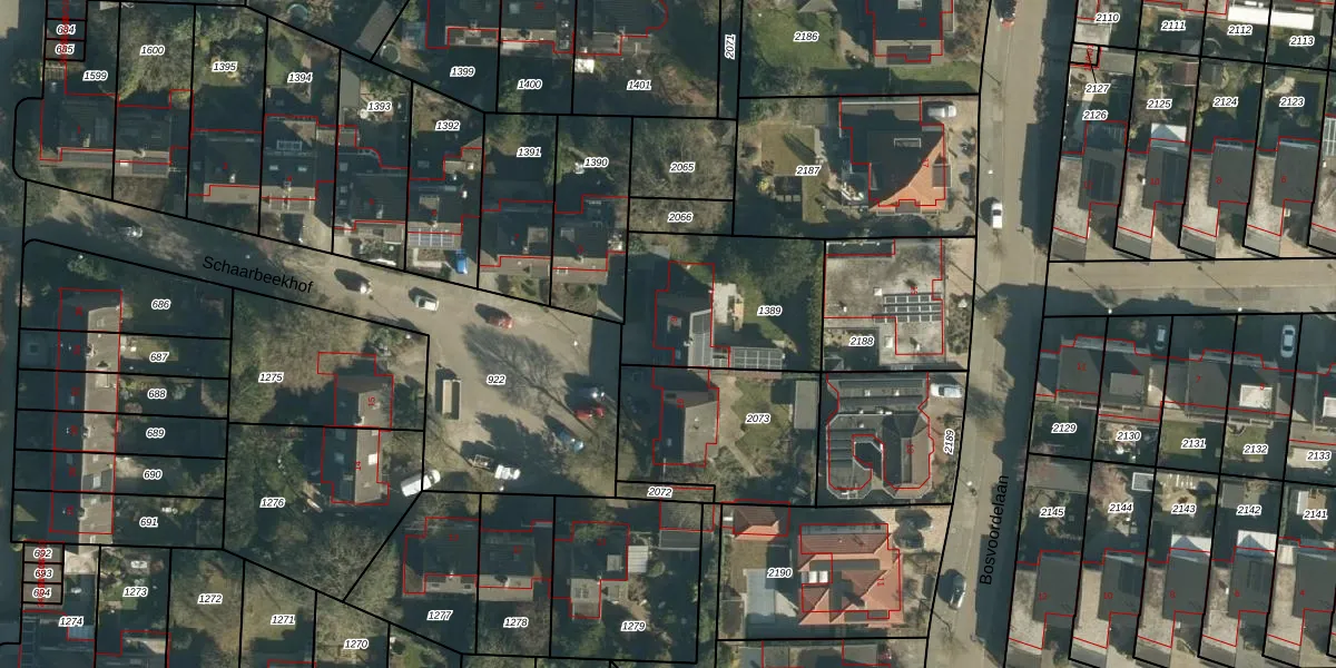 Het perceel waarop Schaarbeekhof 9 staat heeft een oppervlakte van 600 m². Dit is een groot perceel. De perceeloppervlakte wordt geregistreerd door het Kadaster. Gedetailleerde informatie over de maten van dit perceel kunt u vinden in het rapport Kadastrale kaart met maatvoering van Schaarbeekhof 9.