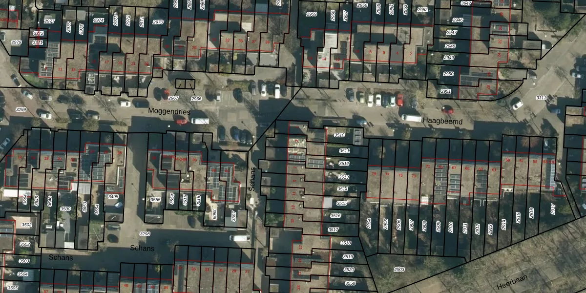 Gebruik de zoekbalk of klik op een perceel voor informatie over de adressen binnen dit perceel.