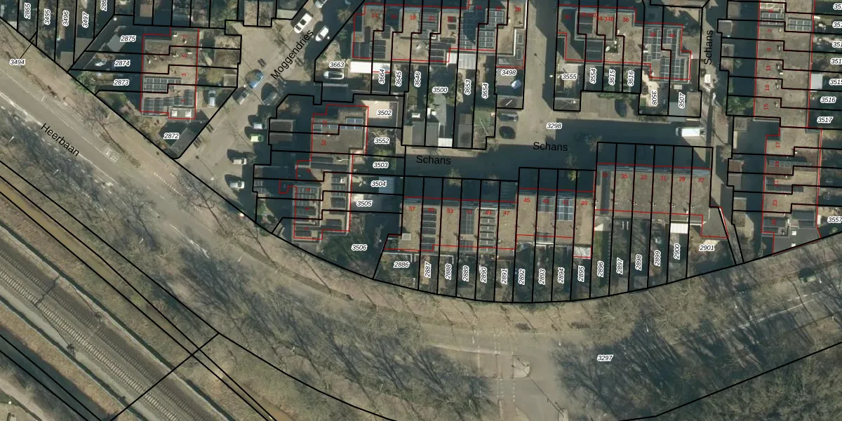 Het perceel waarop Schans 57 staat heeft een oppervlakte van 180 m². Dit is een middelgroot perceel. De perceeloppervlakte wordt geregistreerd door het Kadaster. Gedetailleerde informatie over de maten van dit perceel kunt u vinden in het rapport Kadastrale kaart met maatvoering van Schans 57.