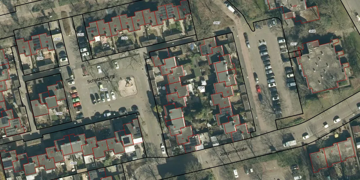 Het perceel waarop Schatzenburg 12 staat heeft een oppervlakte van 2974 m². Dit is een zeer groot perceel. De perceeloppervlakte wordt geregistreerd door het Kadaster. Gedetailleerde informatie over de maten van dit perceel kunt u vinden in het rapport Kadastrale kaart met maatvoering van Schatzenburg 12.