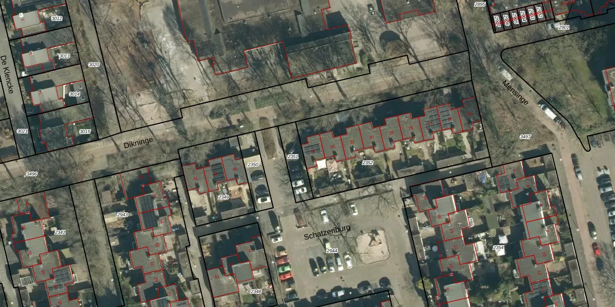 Het perceel waarop Schatzenburg 36 staat heeft een oppervlakte van 1507 m². Dit is een zeer groot perceel. De perceeloppervlakte wordt geregistreerd door het Kadaster. Gedetailleerde informatie over de maten van dit perceel kunt u vinden in het rapport Kadastrale kaart met maatvoering van Schatzenburg 36.