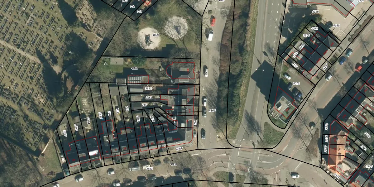 Gebruik de zoekbalk of klik op een perceel voor informatie over de adressen binnen dit perceel.