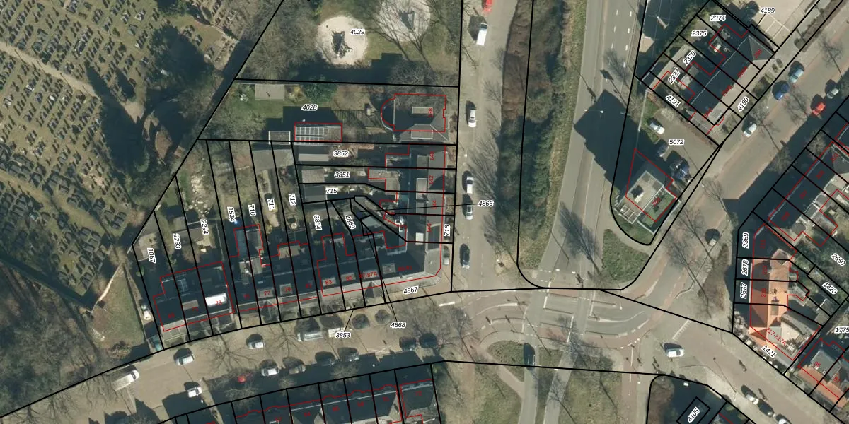 Gebruik de zoekbalk of klik op een perceel voor informatie over de adressen binnen dit perceel.