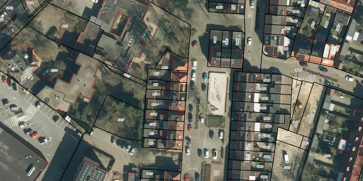 Gebruik de zoekbalk of klik op een perceel voor informatie over de adressen binnen dit perceel.