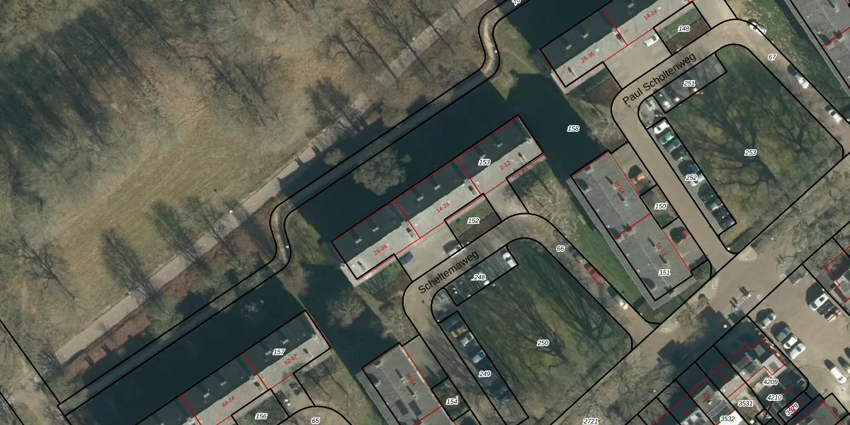 Scheltemaweg 20 is gelegen op kadastraal perceel STR03E153. Deze kadastrale aanduiding is uniek en wordt gebruikt door het Kadaster om eigendomsrechten en andere zakelijke rechten vast te leggen. Het perceel maakt onderdeel uit van de kadastrale gemeente Strijp.
