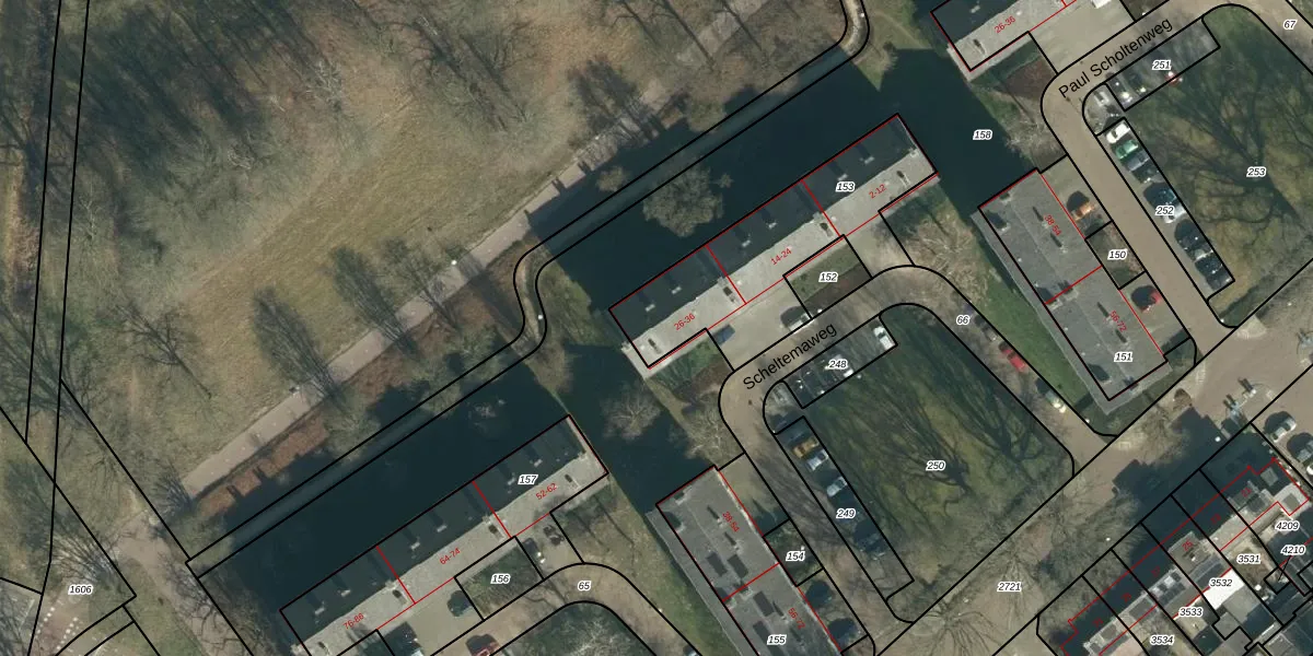 Scheltemaweg 32 is gelegen op kadastraal perceel STR03E153. Deze kadastrale aanduiding is uniek en wordt gebruikt door het Kadaster om eigendomsrechten en andere zakelijke rechten vast te leggen. Het perceel maakt onderdeel uit van de kadastrale gemeente Strijp.