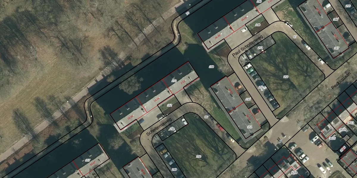 Scheltemaweg 4 is gelegen op kadastraal perceel STR03E153. Deze kadastrale aanduiding is uniek en wordt gebruikt door het Kadaster om eigendomsrechten en andere zakelijke rechten vast te leggen. Het perceel maakt onderdeel uit van de kadastrale gemeente Strijp.
