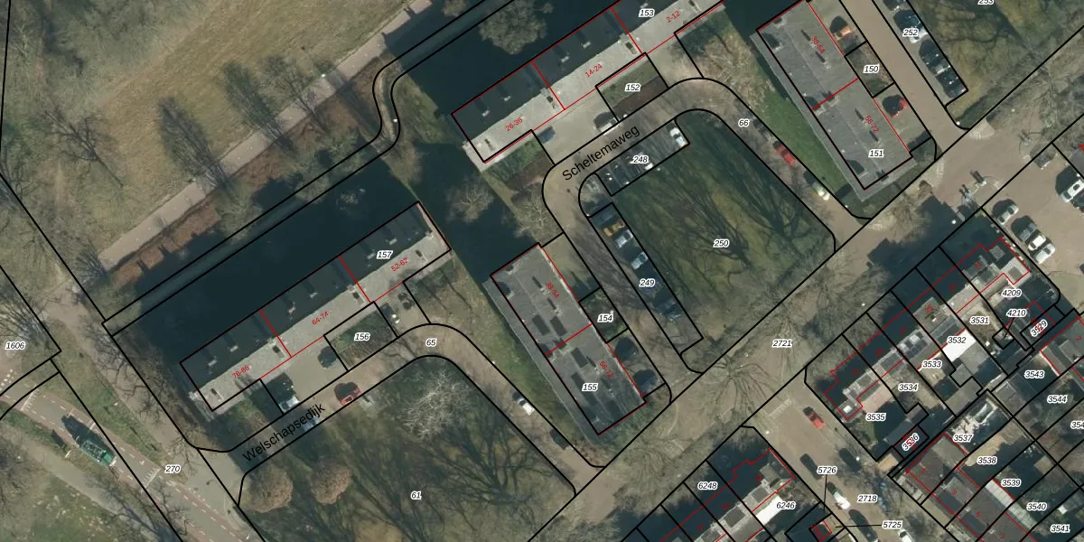 Scheltemaweg 50 is gelegen op kadastraal perceel STR03E155. Deze kadastrale aanduiding is uniek en wordt gebruikt door het Kadaster om eigendomsrechten en andere zakelijke rechten vast te leggen. Het perceel maakt onderdeel uit van de kadastrale gemeente Strijp.