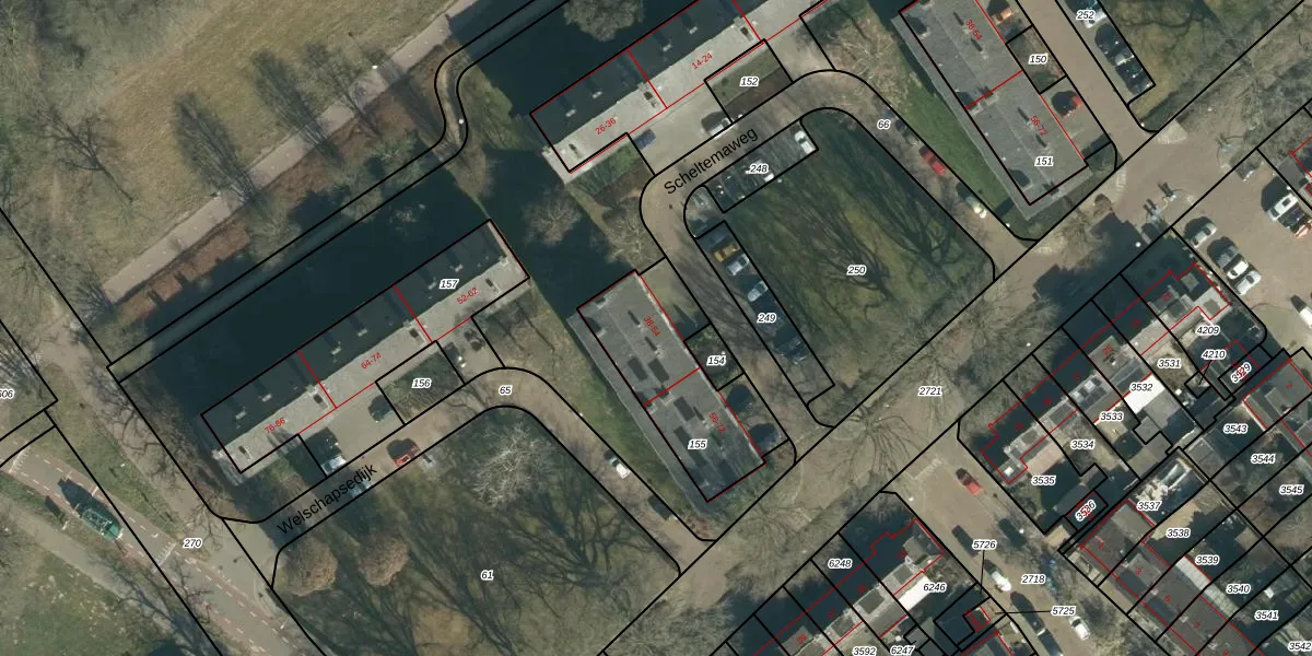 Scheltemaweg 52 is gelegen op kadastraal perceel STR03E155. Deze kadastrale aanduiding is uniek en wordt gebruikt door het Kadaster om eigendomsrechten en andere zakelijke rechten vast te leggen. Het perceel maakt onderdeel uit van de kadastrale gemeente Strijp.