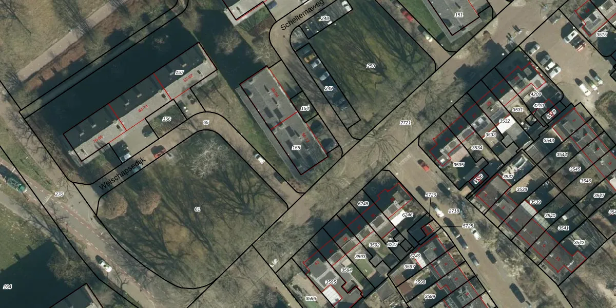 Scheltemaweg 66 is gelegen op kadastraal perceel STR03E155. Deze kadastrale aanduiding is uniek en wordt gebruikt door het Kadaster om eigendomsrechten en andere zakelijke rechten vast te leggen. Het perceel maakt onderdeel uit van de kadastrale gemeente Strijp.