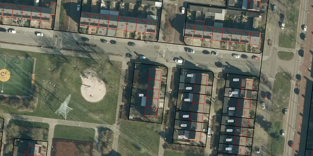 Het perceel waarop Schildstraat 15 staat heeft een oppervlakte van 784 m². Dit is een groot perceel. De perceeloppervlakte wordt geregistreerd door het Kadaster. Gedetailleerde informatie over de maten van dit perceel kunt u vinden in het rapport Kadastrale kaart met maatvoering van Schildstraat 15.