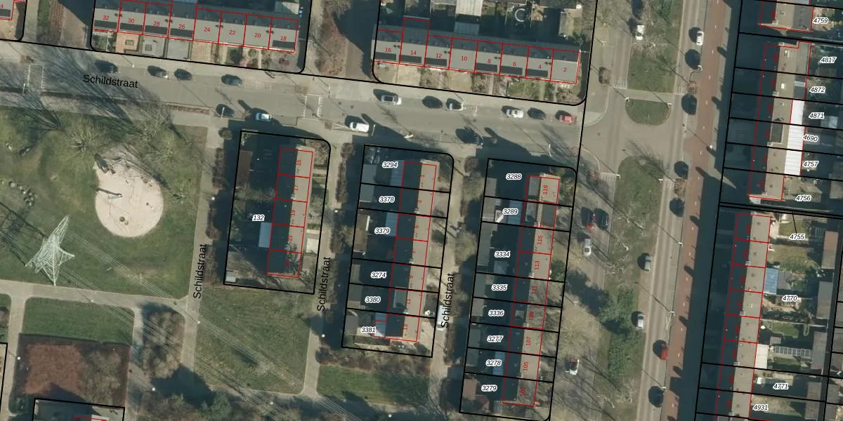 Schildstraat 3 is gelegen op kadastraal perceel WSL01M3378. Deze kadastrale aanduiding is uniek en wordt gebruikt door het Kadaster om eigendomsrechten en andere zakelijke rechten vast te leggen. Het perceel maakt onderdeel uit van de kadastrale gemeente Woensel.