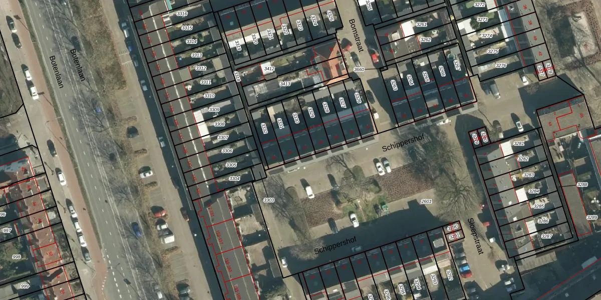 Gebruik de zoekbalk of klik op een perceel voor informatie over de adressen binnen dit perceel.