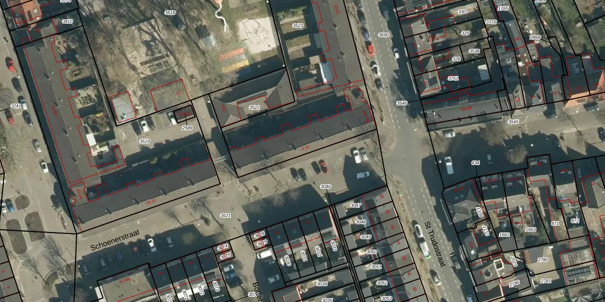 Schoenerstraat 6 is gelegen op kadastraal perceel STR03D3523. Deze kadastrale aanduiding is uniek en wordt gebruikt door het Kadaster om eigendomsrechten en andere zakelijke rechten vast te leggen. Het perceel maakt onderdeel uit van de kadastrale gemeente Strijp.