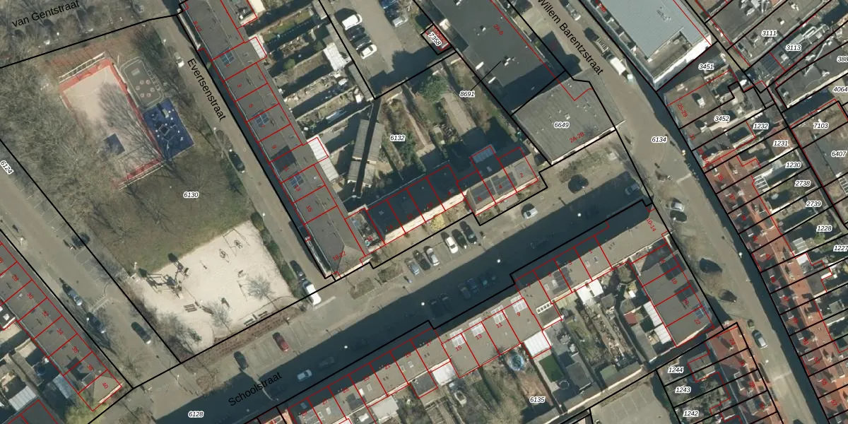 Schoolstraat 10 is gelegen op kadastraal perceel WSL01G6132. Deze kadastrale aanduiding is uniek en wordt gebruikt door het Kadaster om eigendomsrechten en andere zakelijke rechten vast te leggen. Het perceel maakt onderdeel uit van de kadastrale gemeente Woensel.