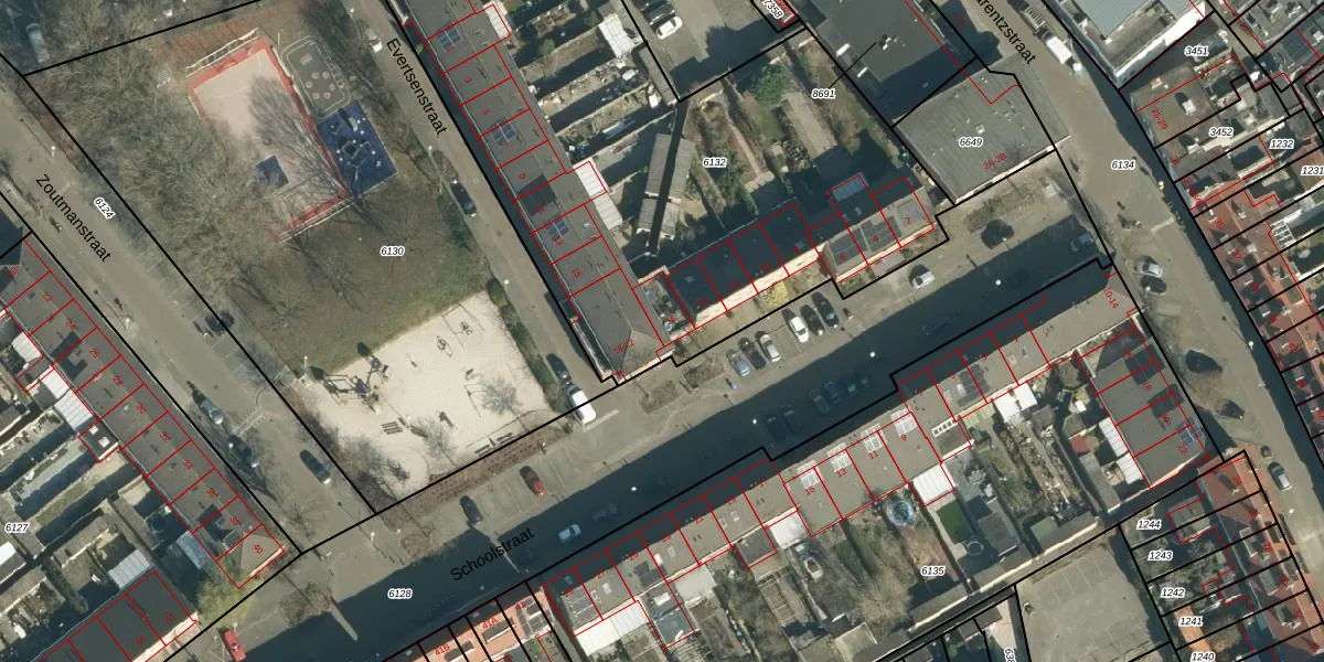Schoolstraat 16 is gelegen op kadastraal perceel WSL01G6132. Deze kadastrale aanduiding is uniek en wordt gebruikt door het Kadaster om eigendomsrechten en andere zakelijke rechten vast te leggen. Het perceel maakt onderdeel uit van de kadastrale gemeente Woensel.